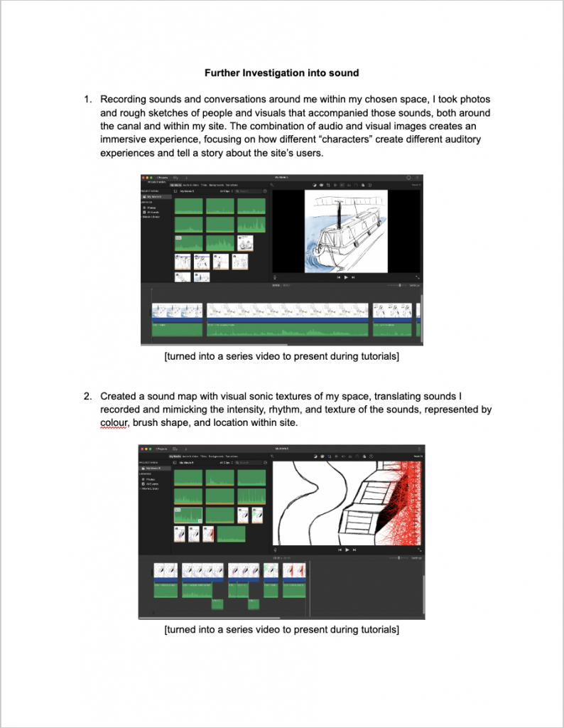 The main feedback I received on this work was to animate the sounds as it would be a more effective method of conveying what I was observing from my site.